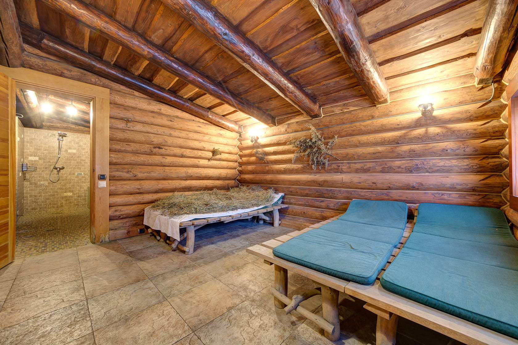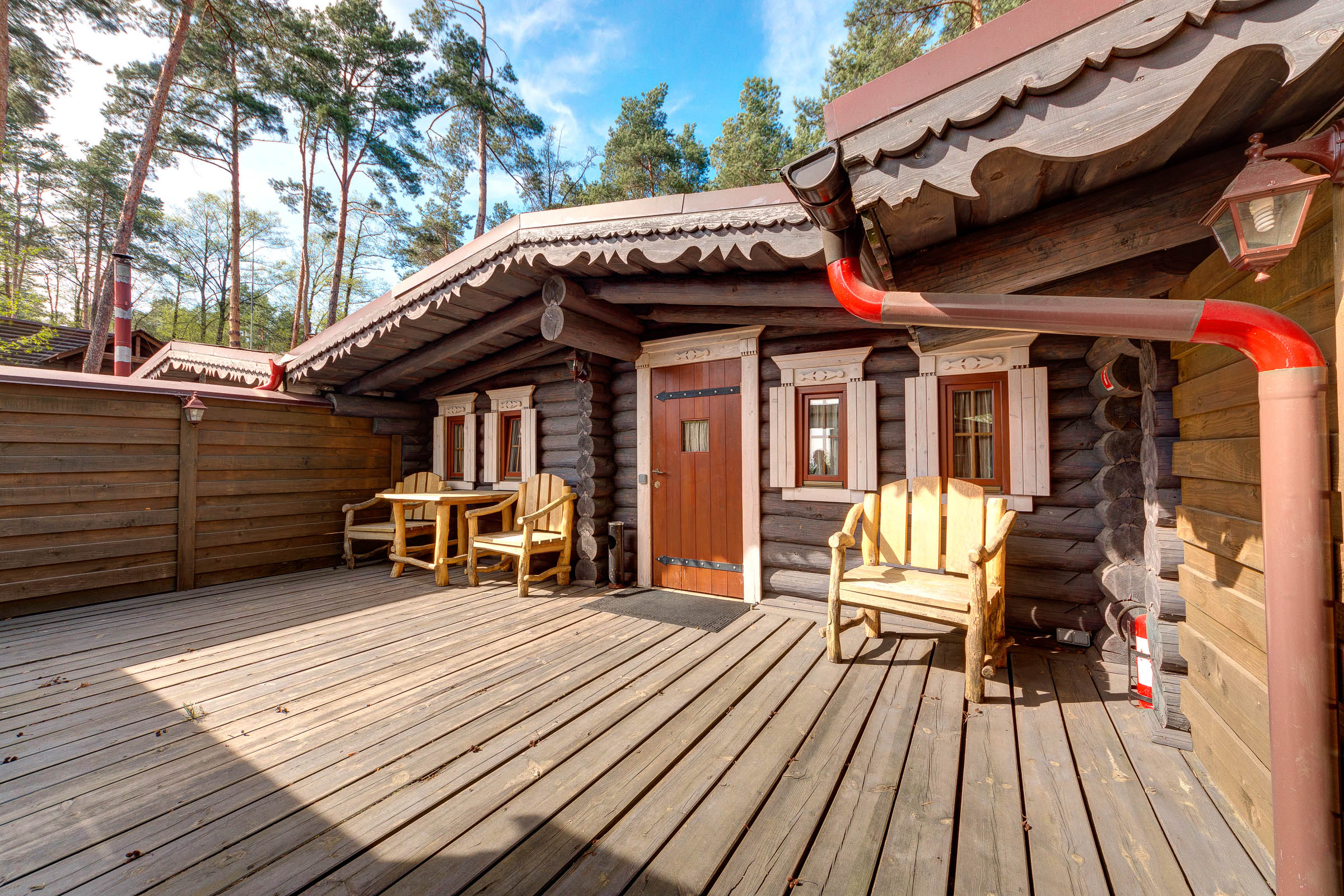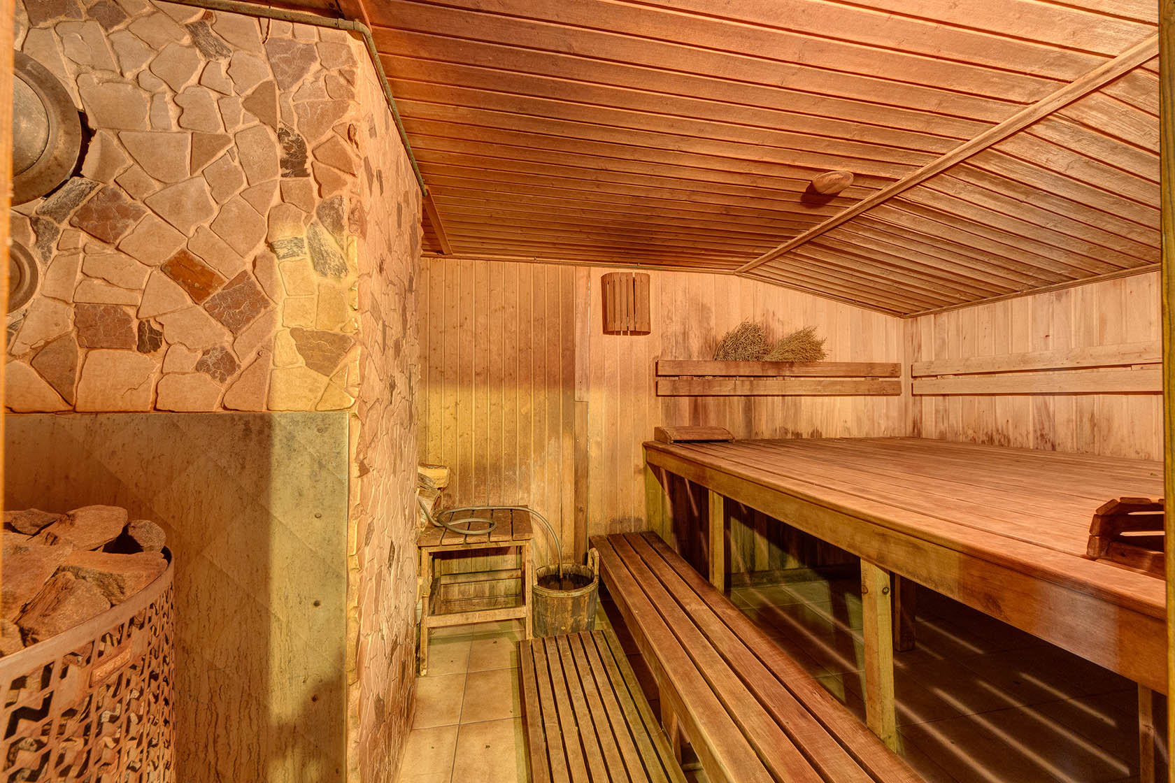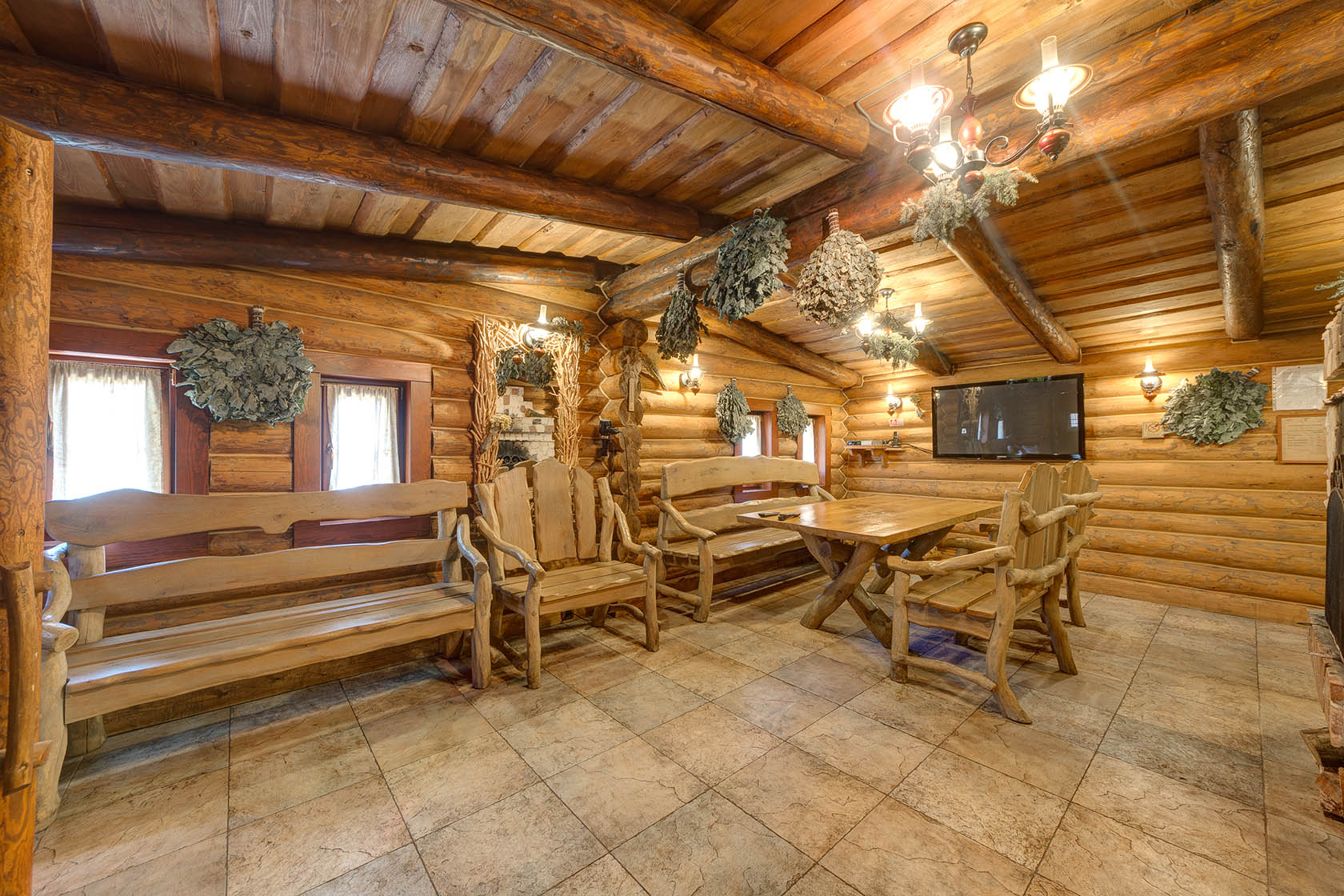 Оставшиеся бани (это «Три товарища» и «Пихтовая») рассчитаны на компании до восьми человек. В любой выбранной бане вас ждет бассейн, ведра-водопады, а также комнаты отдыха с плазменными телевизорами и каминами.