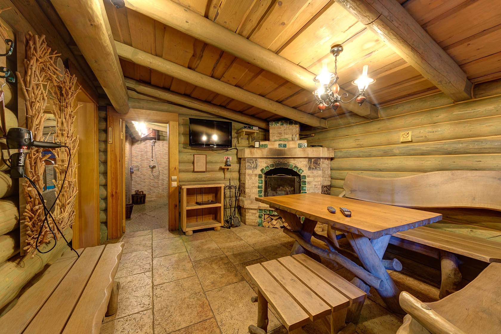 • Rest room with fireplace and plasma