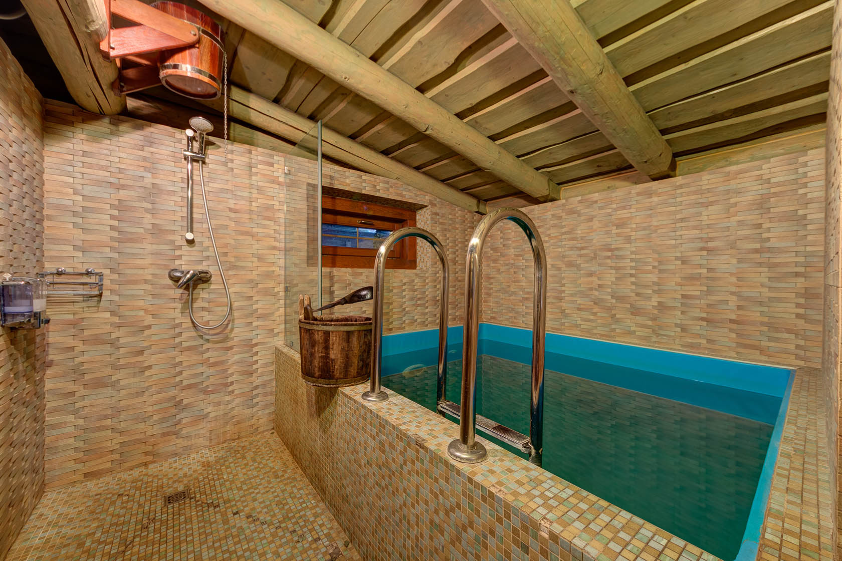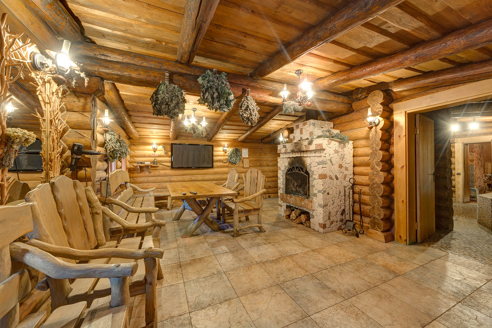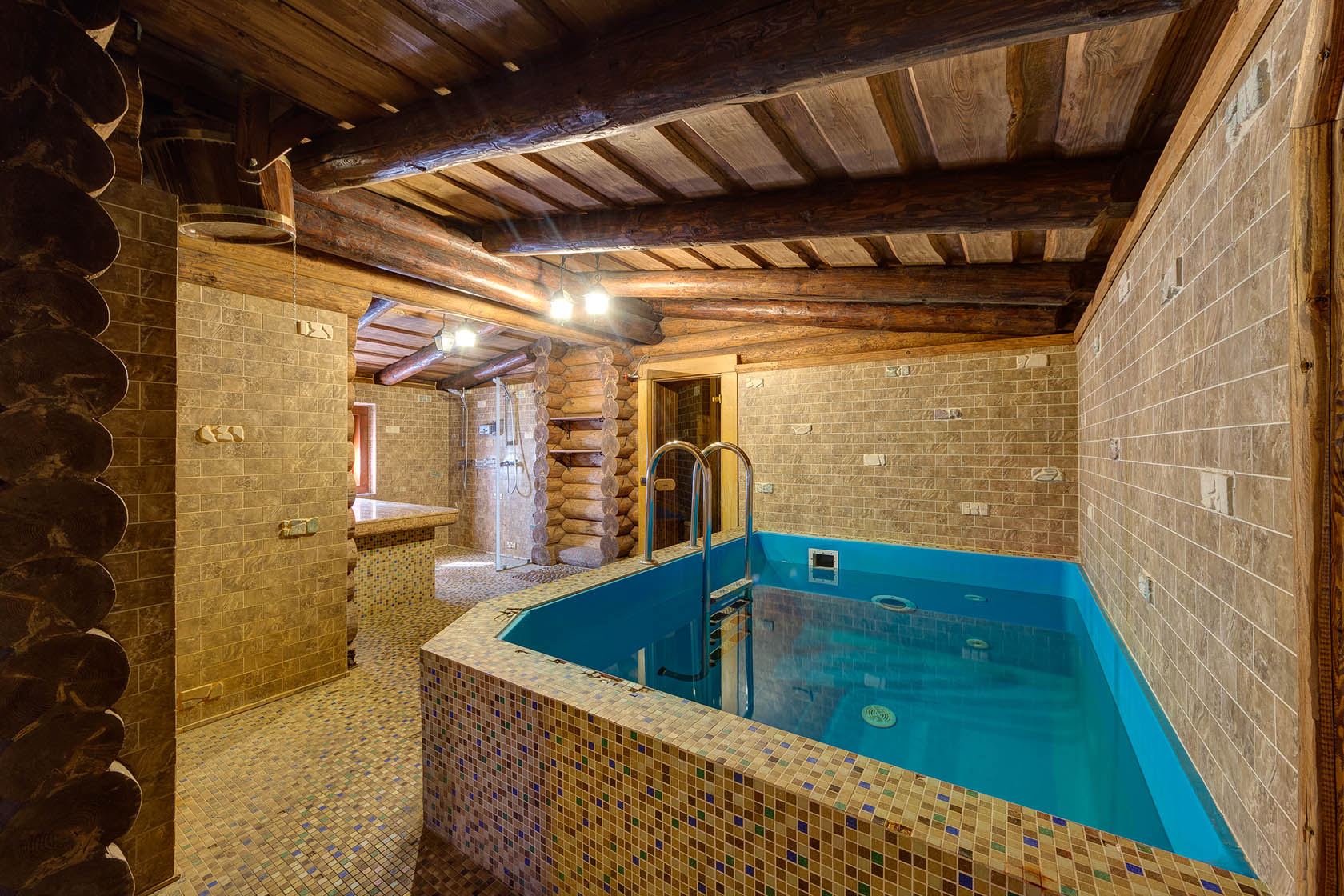Left bathhouses (these are «Three comrades» and «Pikhtovaya») are estimated for companies up to eight persons. Swimming pool, buckets-waterfalls and also rest rooms with plasma TVs and fireplaces are waiting for you in each chosen bathhouse.